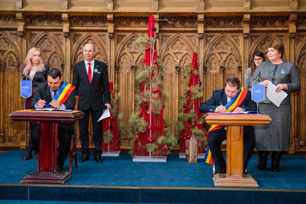Semnare acorduri de cooperare între 16 administrații publice locale din județul Iași, România și din raionul Ungheni, Republica Moldova
